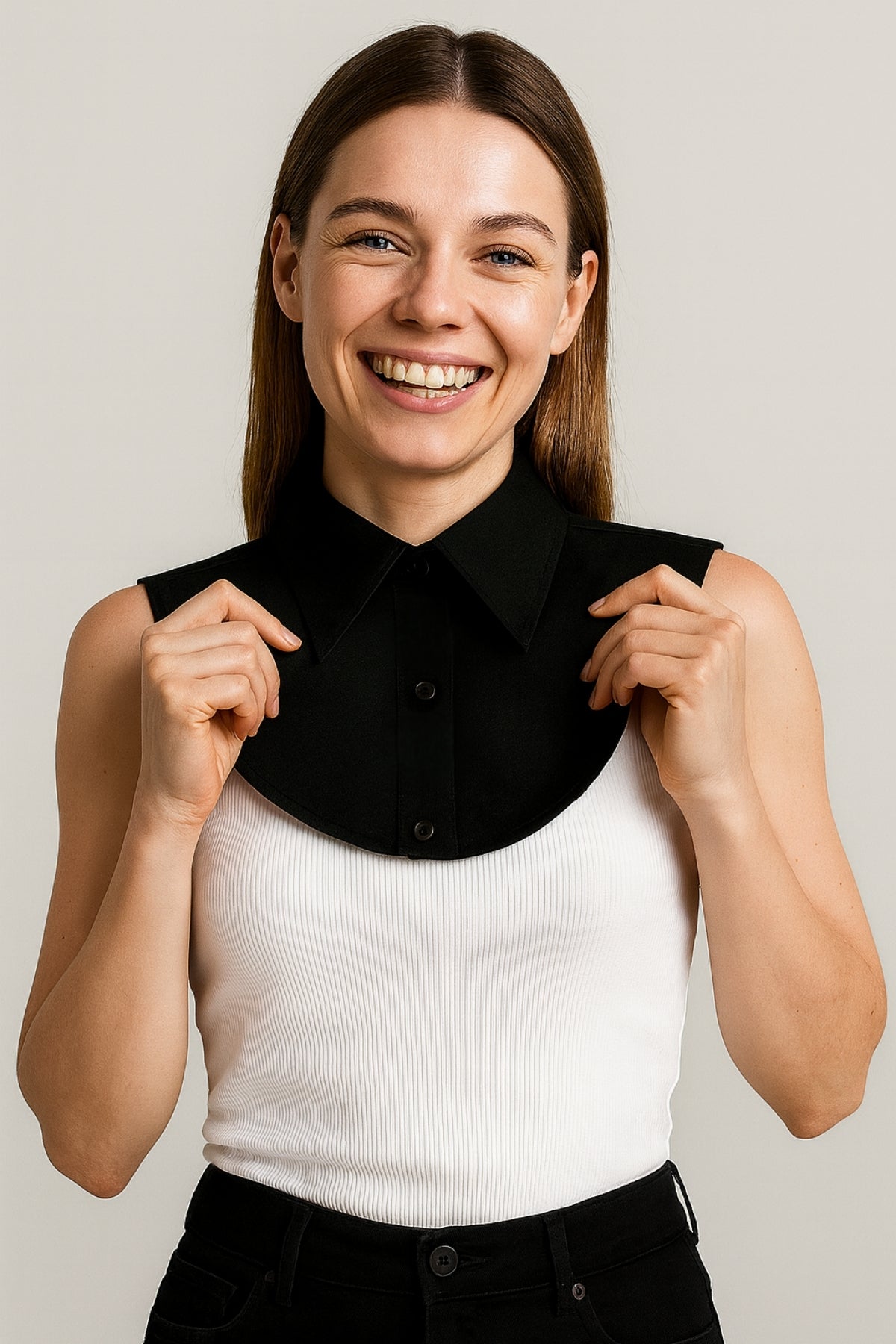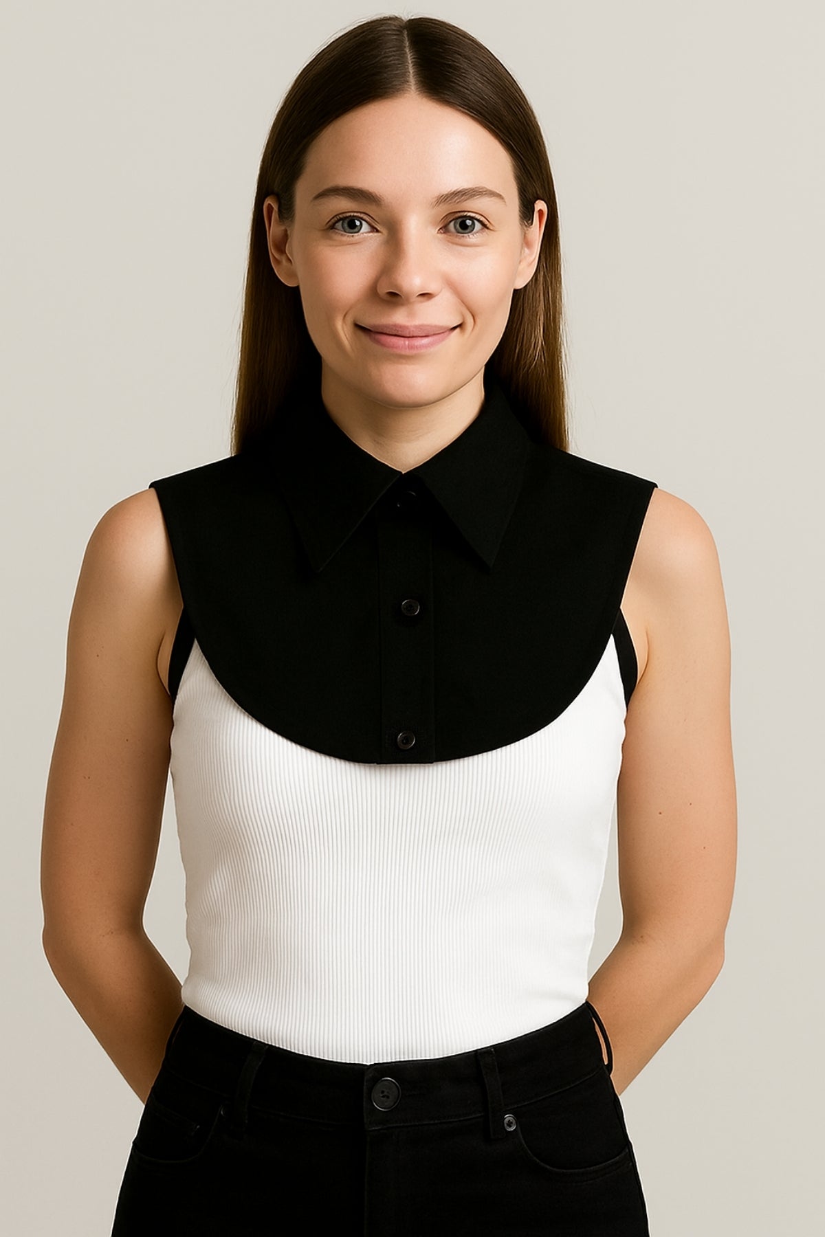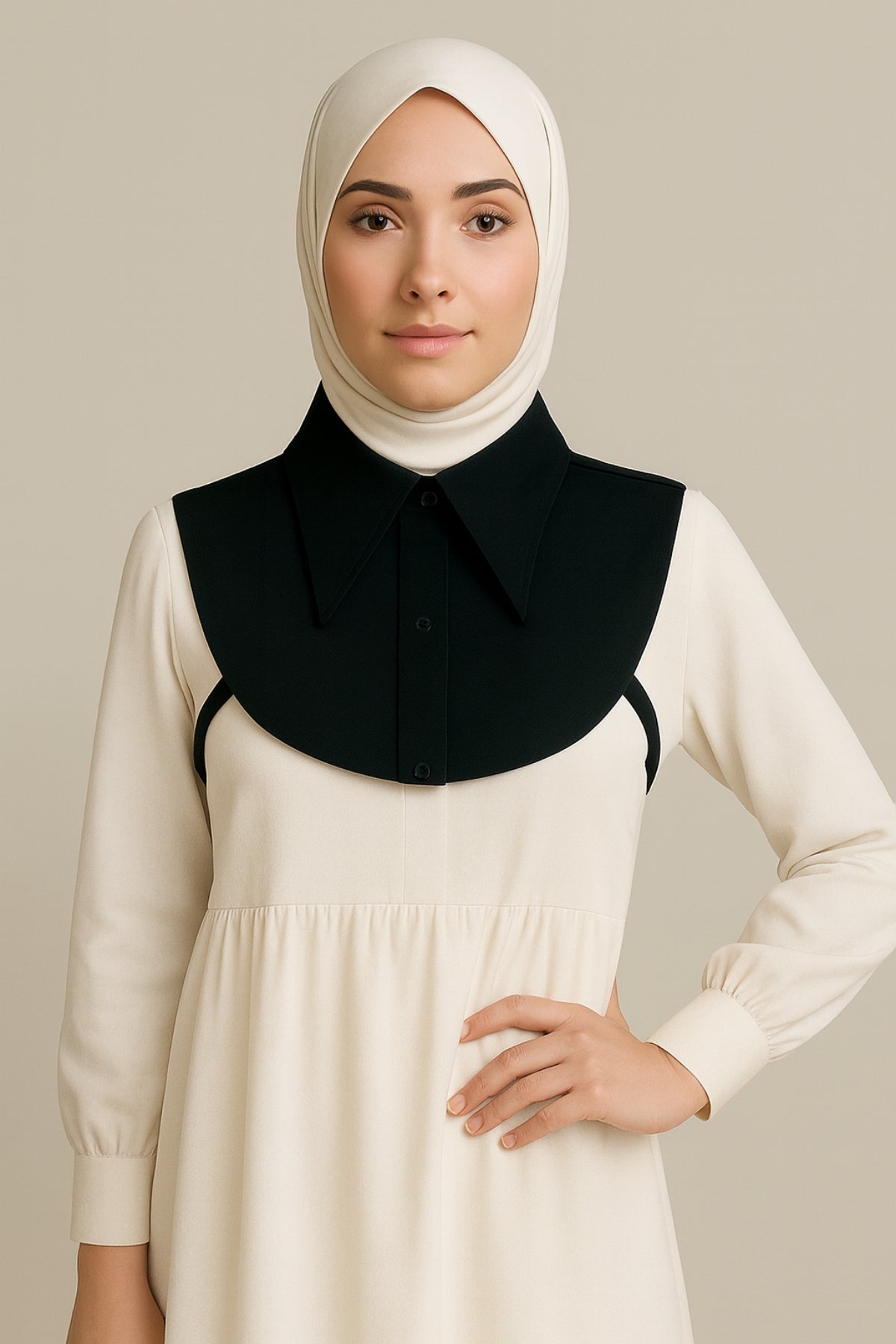 Stilinize minimal bir zarafet eklemek isteyenler için: Mirach Textile Sivri Yaka Mini Gömlek Yakası – Siyah. Sivri yaka formu ve mini yuvarlak kesimiyle sade parçaları öne çıkarır. Esnek tasarımı sayesinde ceket, kazak ya da elbise altına kolayca adapte olur. İdeal kombinlerden özel davetlere kadar her ortamda kullanabileceğiniz bu aksesuar, siyah rengiyle ferah bir görünüm sunar.