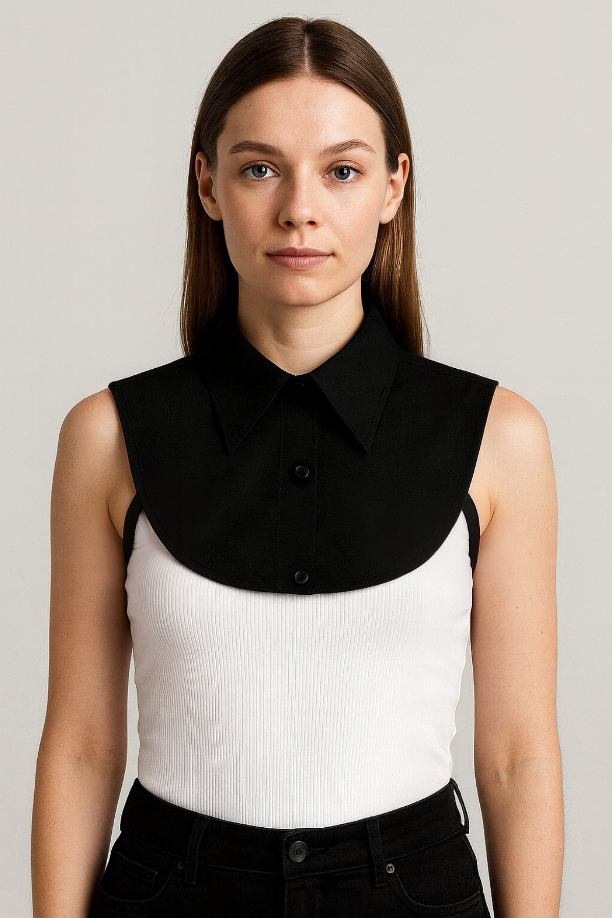 Sivri Yaka Mini Gömlek Yakası - Siyah