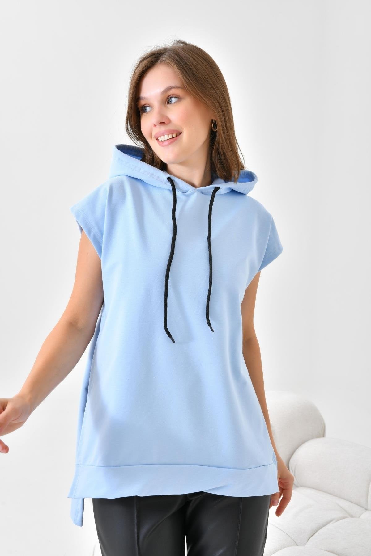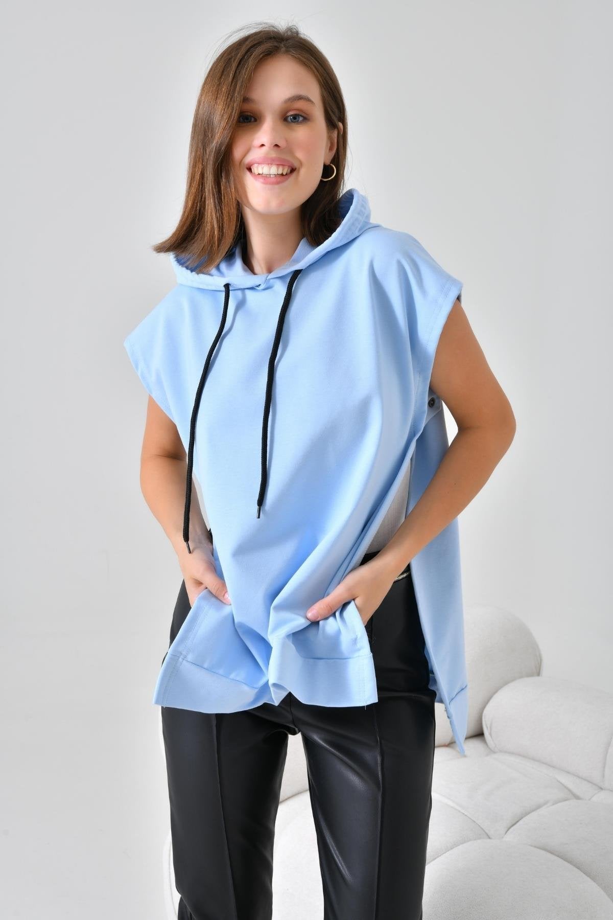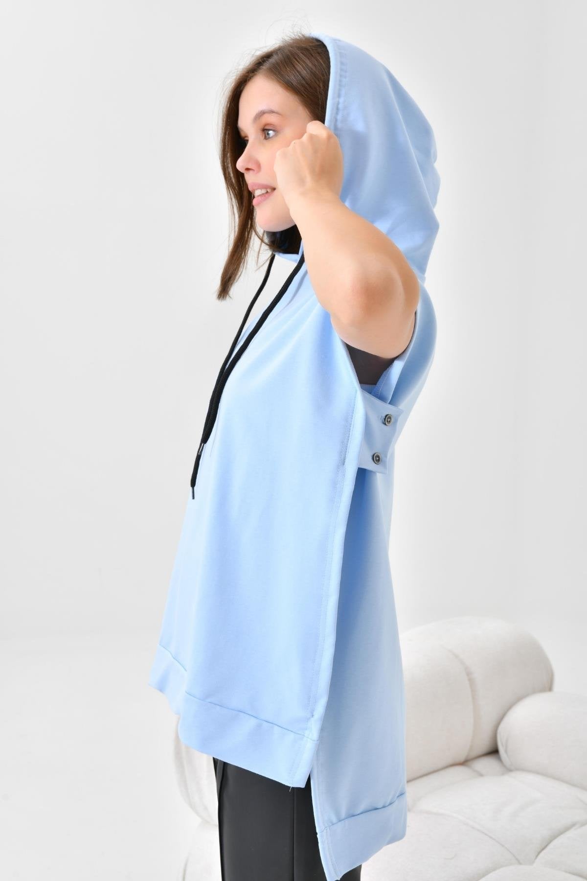 Kapüşonlu gökyüzü süveter sweat, sade tasarımı ve fonksiyonel detaylarıyla hem rahatlık hem de stil sunar. Düz kesimi ve ayarlanabilir düğmeli yapısıyla vücuda uyum sağlar. Yumuşak dokulu çift iplik kumaştan üretilen bu model, dört mevsim kombinlerinize konfor katar. Spor şıklığı seven kadınlar için ideal bir parçadır.