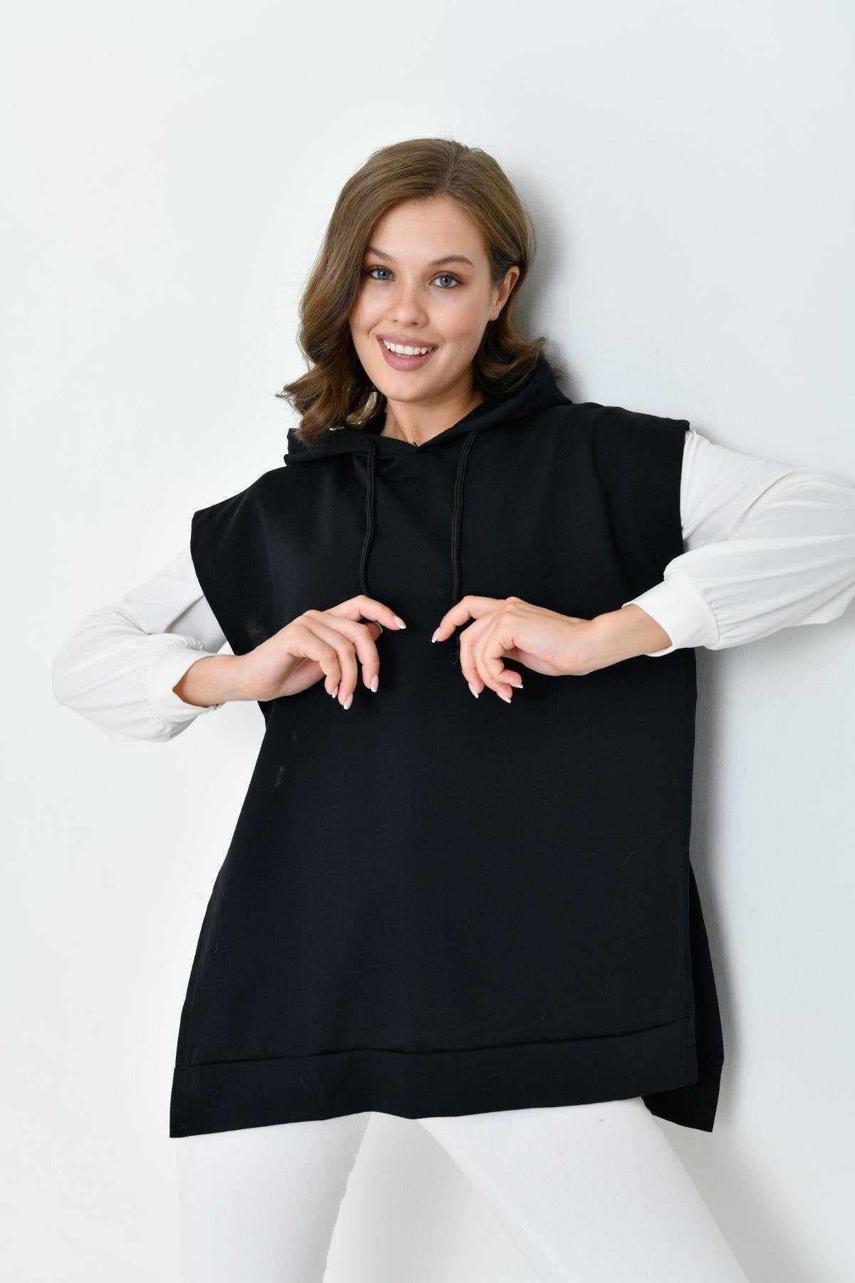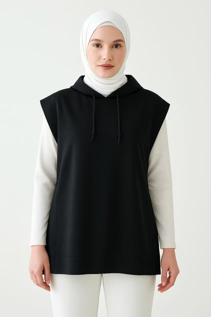Kapüşonlu siyah süveter sweat, sade tasarımı ve fonksiyonel detaylarıyla hem rahatlık hem de stil sunar. Düz kesimi ve ayarlanabilir düğmeli yapısıyla vücuda uyum sağlar. Yumuşak dokulu çift iplik kumaştan üretilen bu model, dört mevsim kombinlerinize konfor katar. Spor şıklığı seven kadınlar için ideal bir parçadır.
