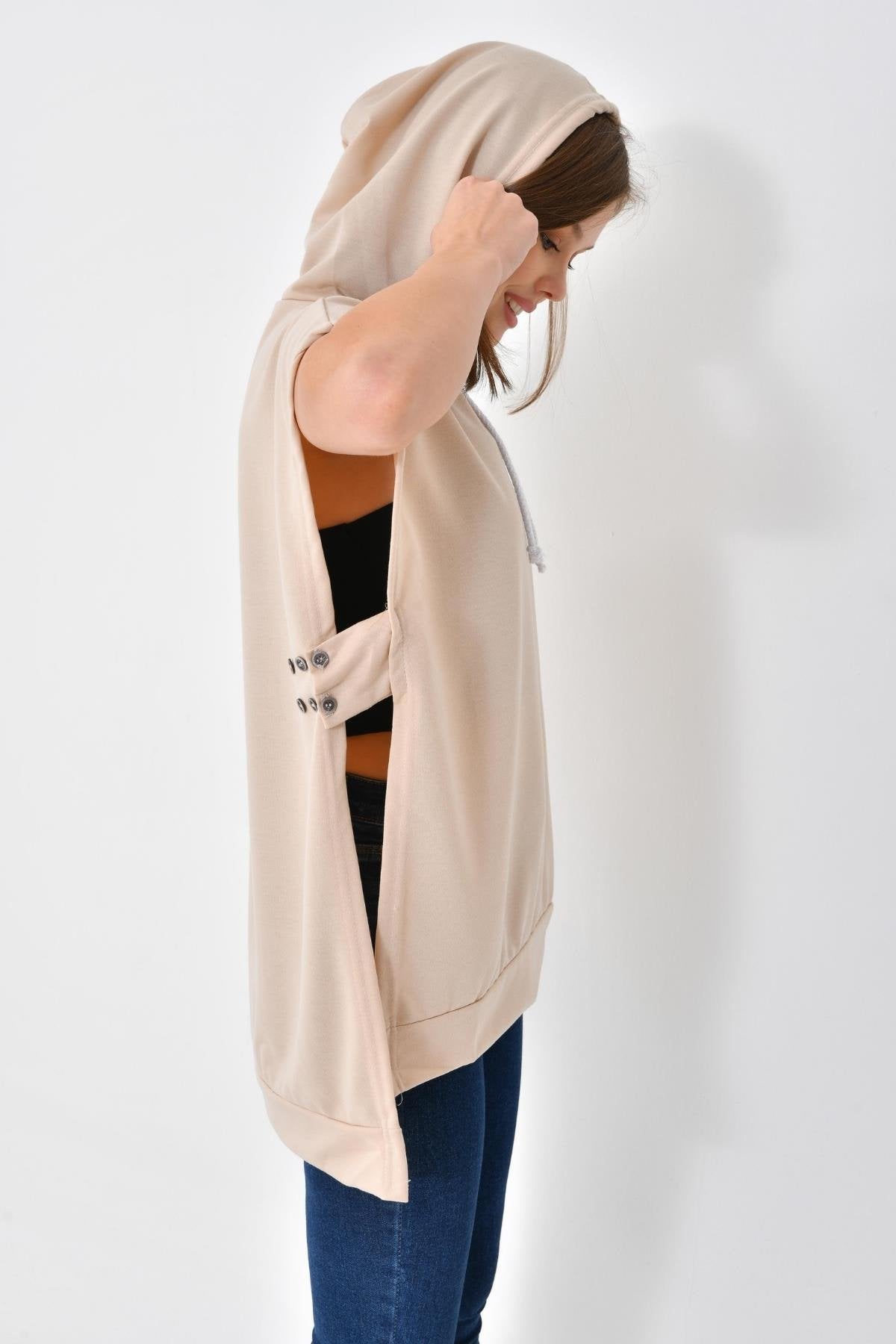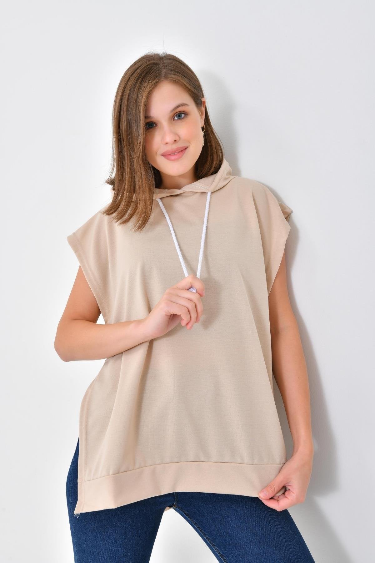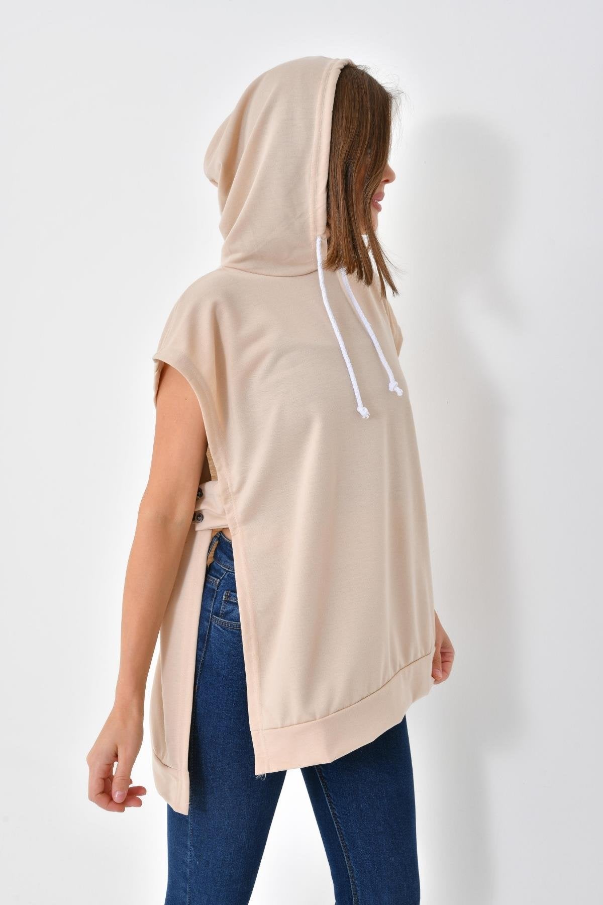Kapüşonlu vizon süveter sweat, sade tasarımı ve fonksiyonel detaylarıyla hem rahatlık hem de stil sunar. Düz kesimi ve ayarlanabilir düğmeli yapısıyla vücuda uyum sağlar. Yumuşak dokulu çift iplik kumaştan üretilen bu model, dört mevsim kombinlerinize konfor katar. Spor şıklığı seven kadınlar için ideal bir parçadır.