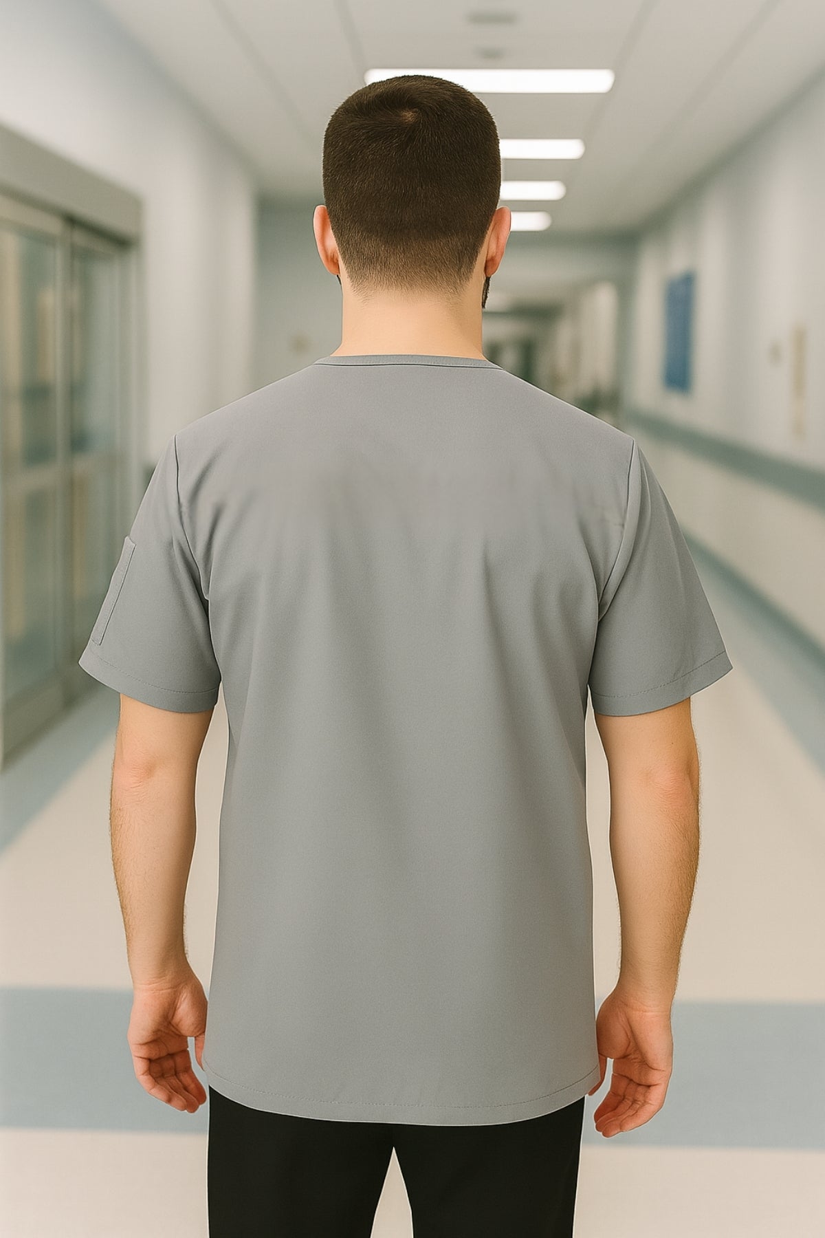 Tek Üst 4 Cepli Erkek Scrubs Forma - Gri