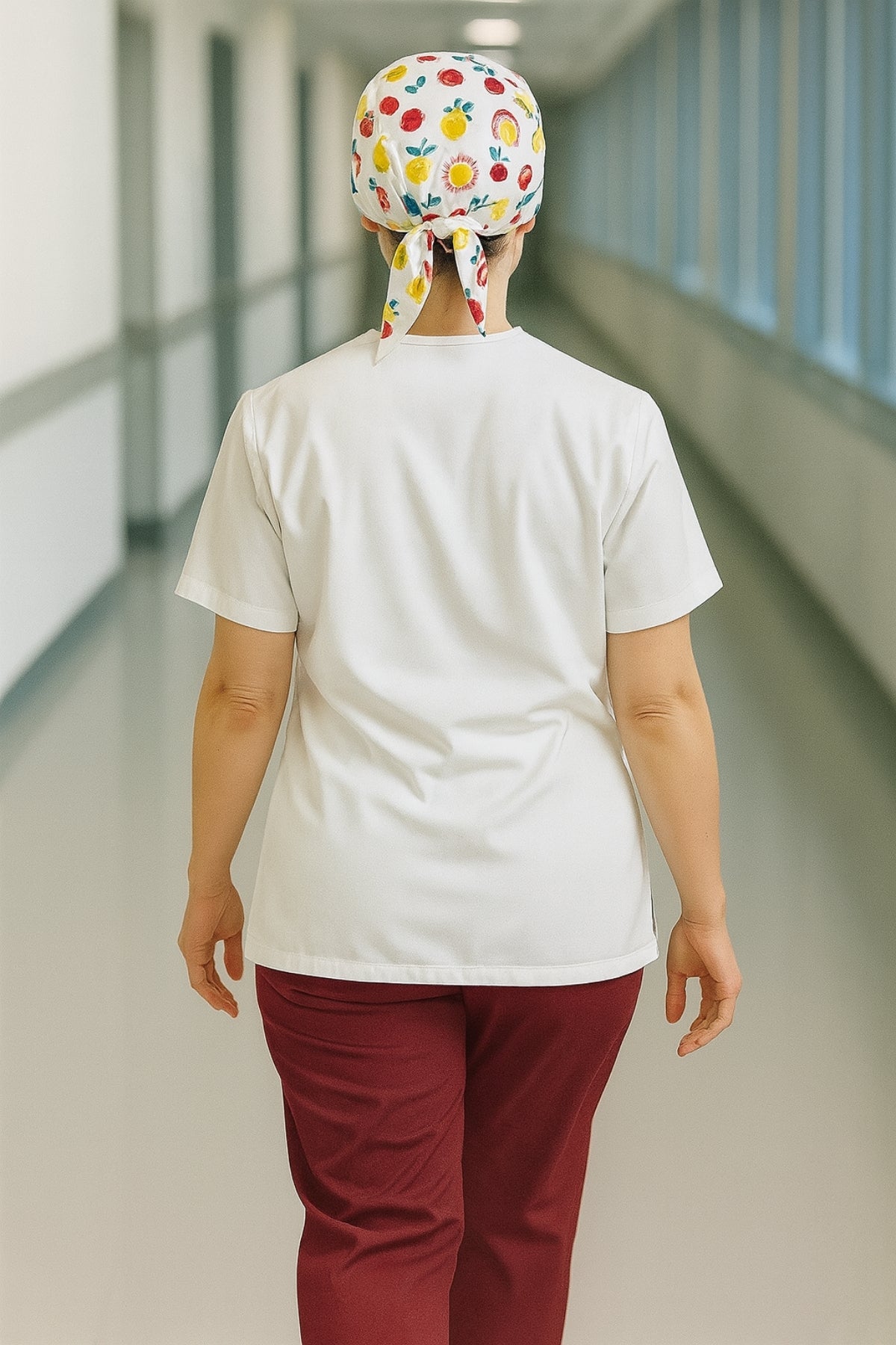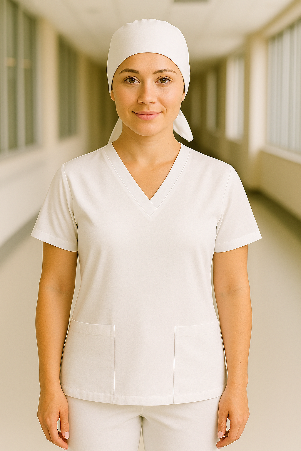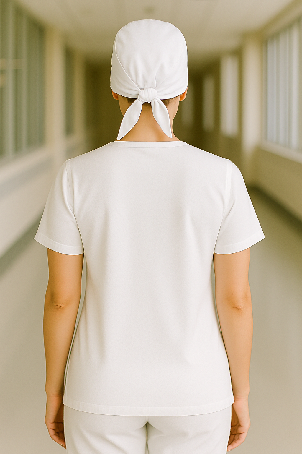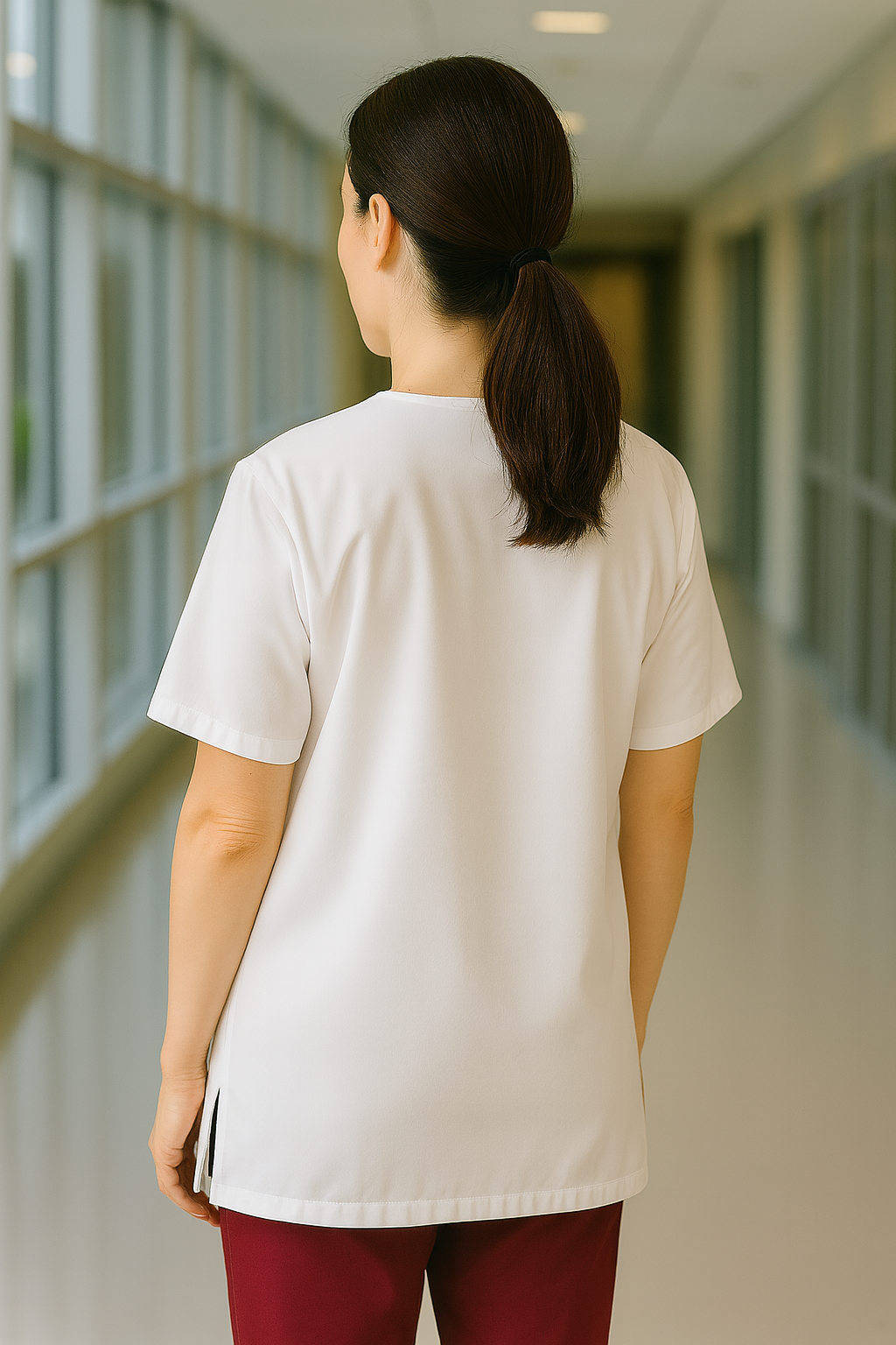 Beyaz tek üst scrubs forma, sağlık çalışanlarının uzun saatler boyunca ihtiyaç duyduğu konforu ve dayanıklılığı bir arada sunar. %67 PES ve %33 pamuk karışımı özel kumaşı sayesinde terletme ve solma yapmaz, gün boyu nefes alabilen yapısı ile ferahlık sağlar. Unisex kalıpta üretilmiştir; hem kadın hem erkek sağlık çalışanları için uygundur. Kolay ütülenebilir yapısı ile çok buruşma yapmaz, pratik cepleri ile işlevsellik sunar. Klinikler, hastaneler ve laboratuvarlar için profesyonel bir seçimdir.