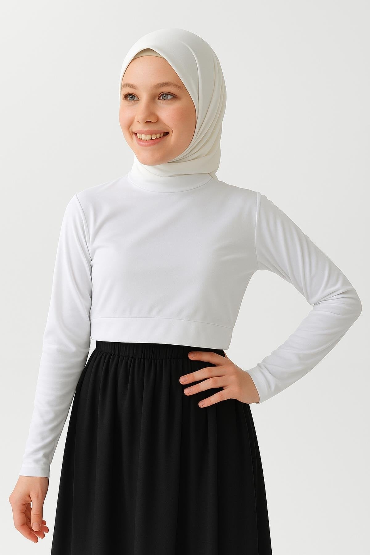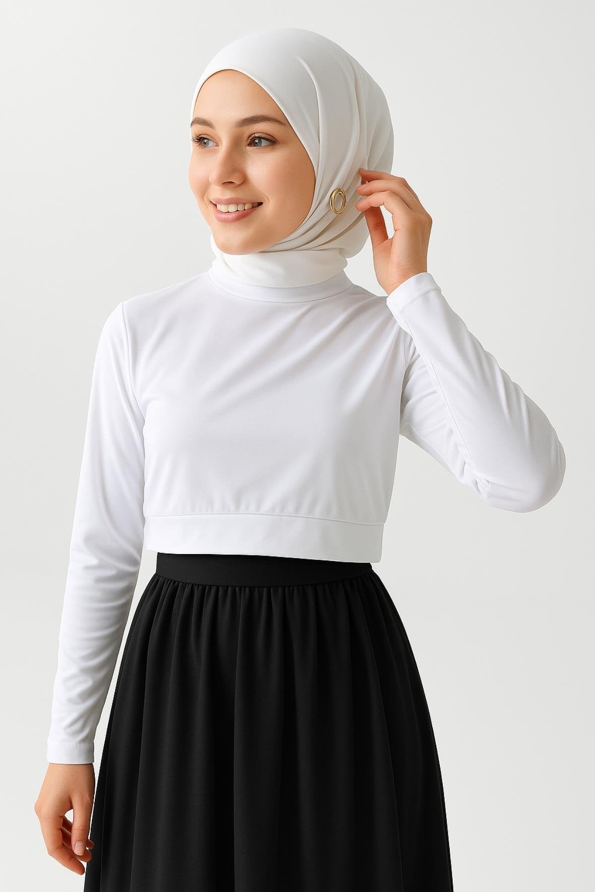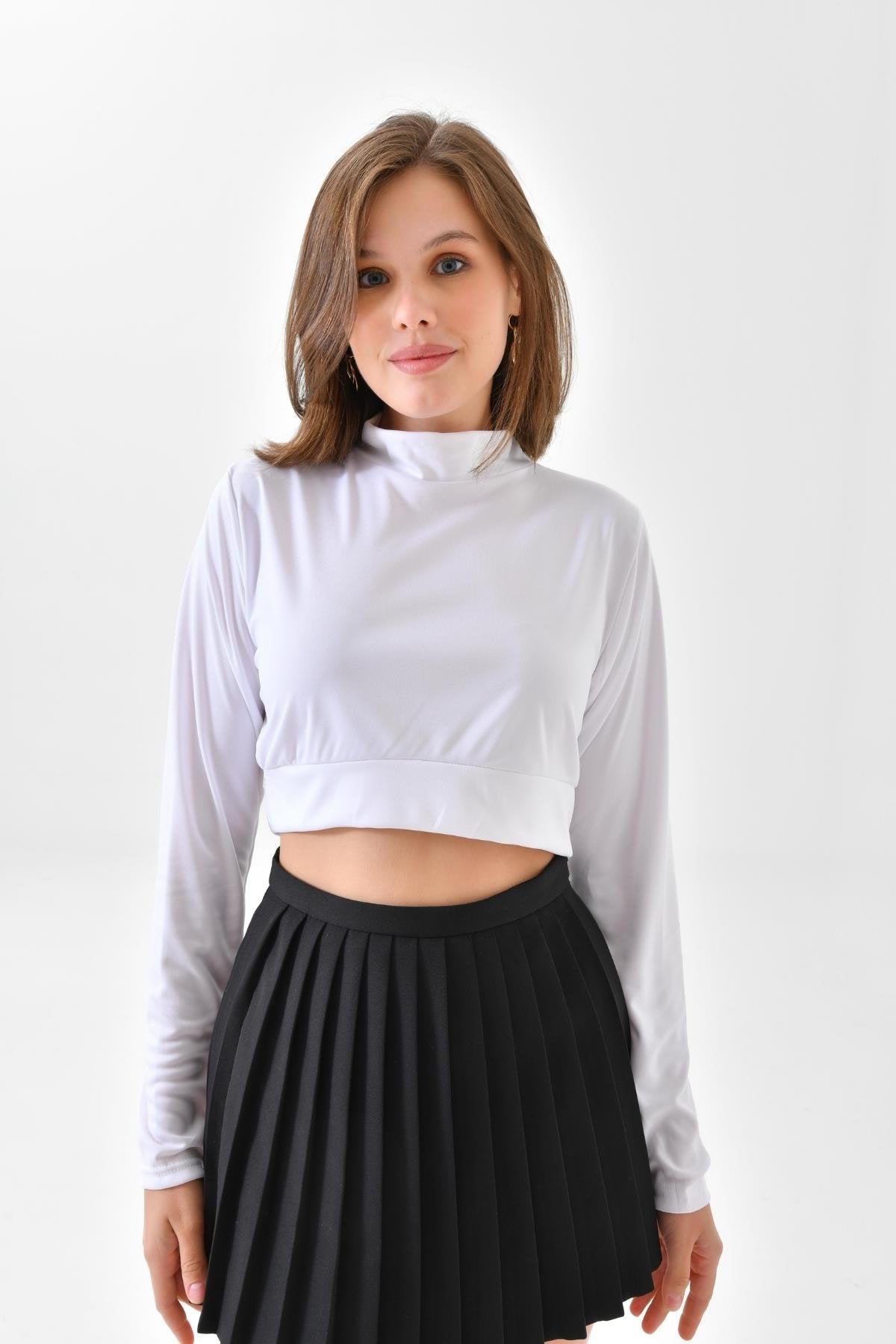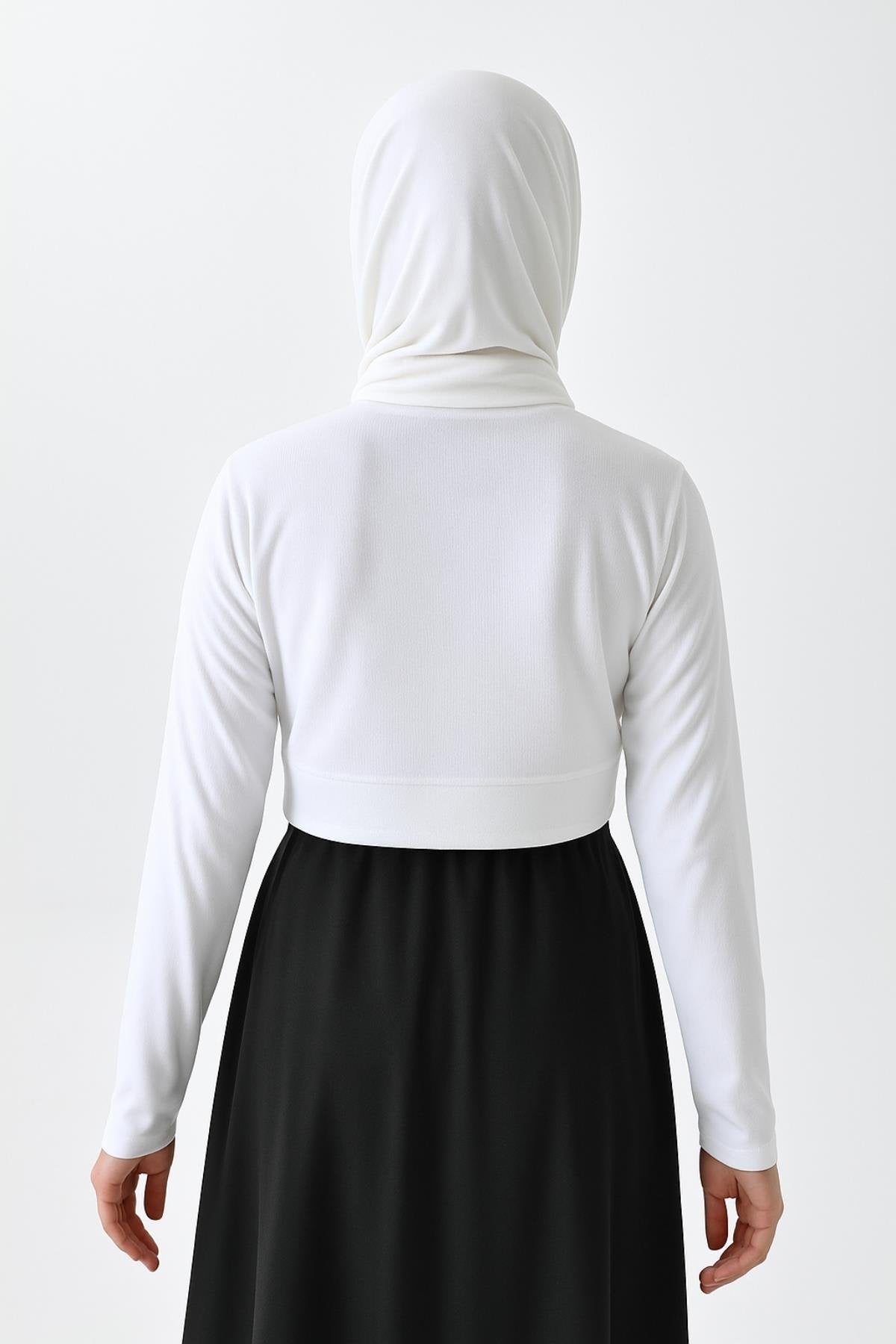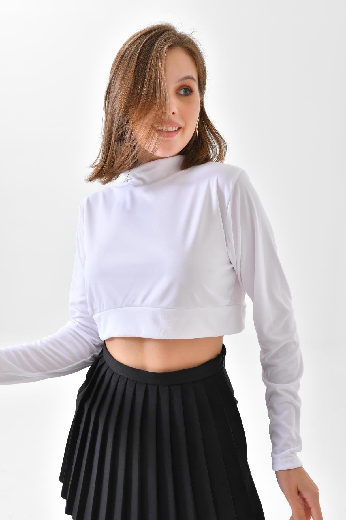 Uzun Kollu Crop Boyunluk - Beyaz