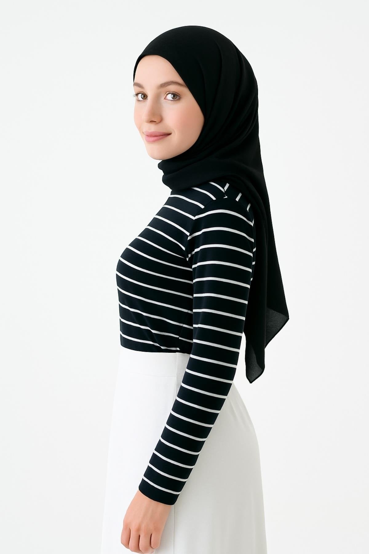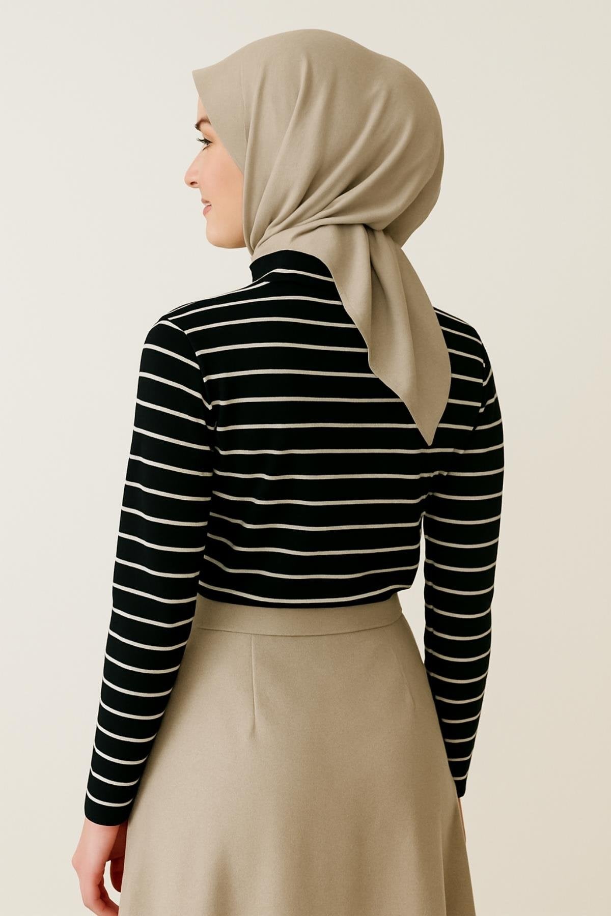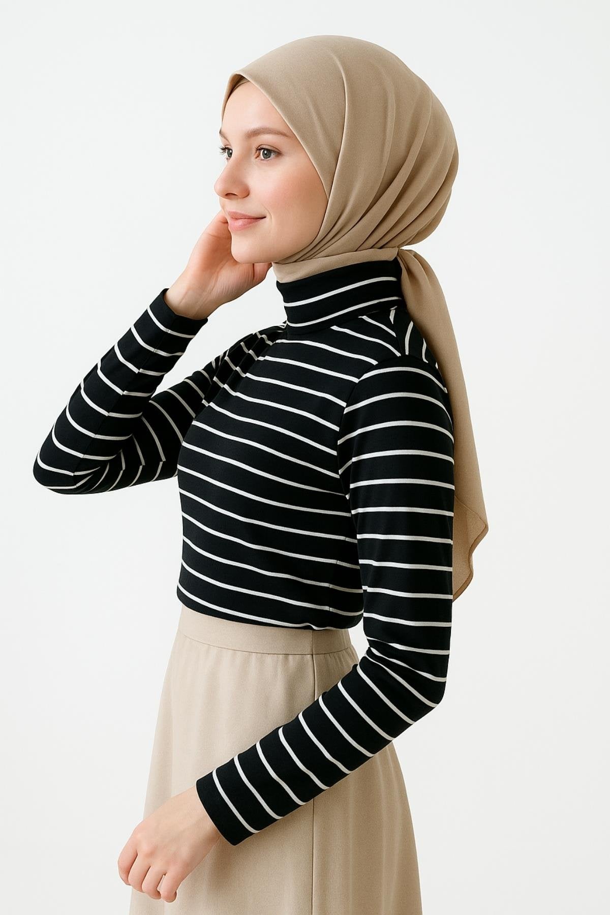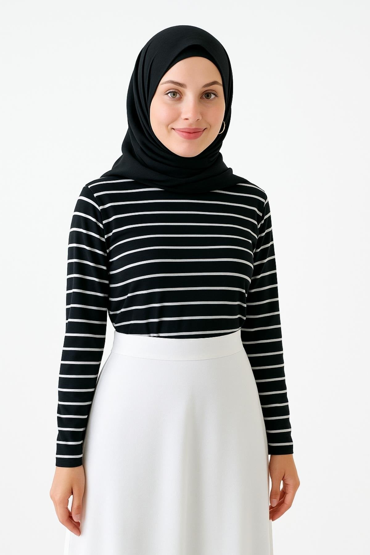 Uzun Kollu Crop Boyunluk - Çizgili (Siyah)
