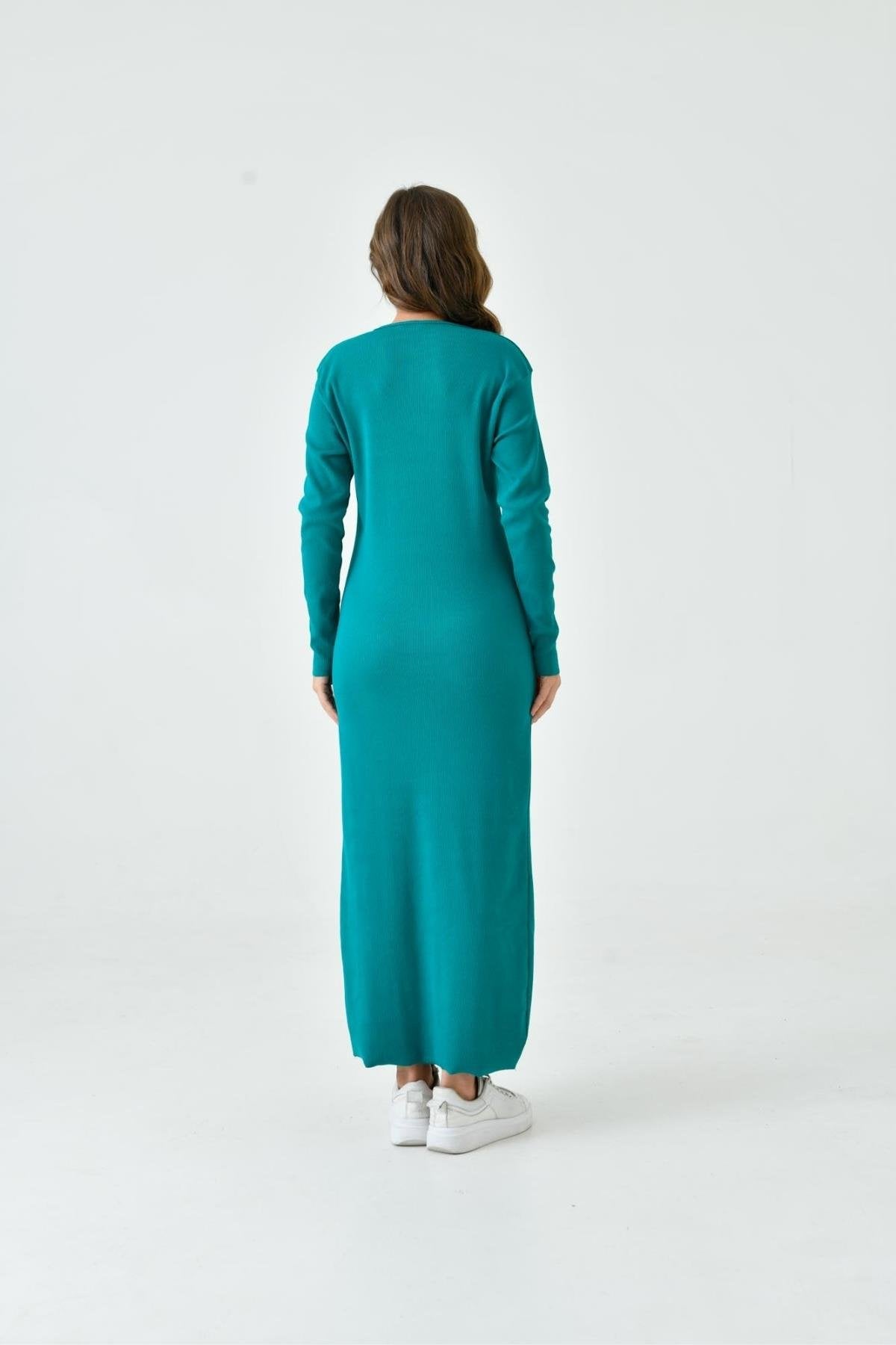 Mirach Textile'in fitilli yeşil uzun kollu elbisesi, hem şık hem de rahat bir stil arayanlar için ideal bir seçimdir. Yumuşak ve esnek kumaşıyla gün boyu konfor sunarken, modern tasarımı sayesinde farklı kombinlerle tamamlanabilir.