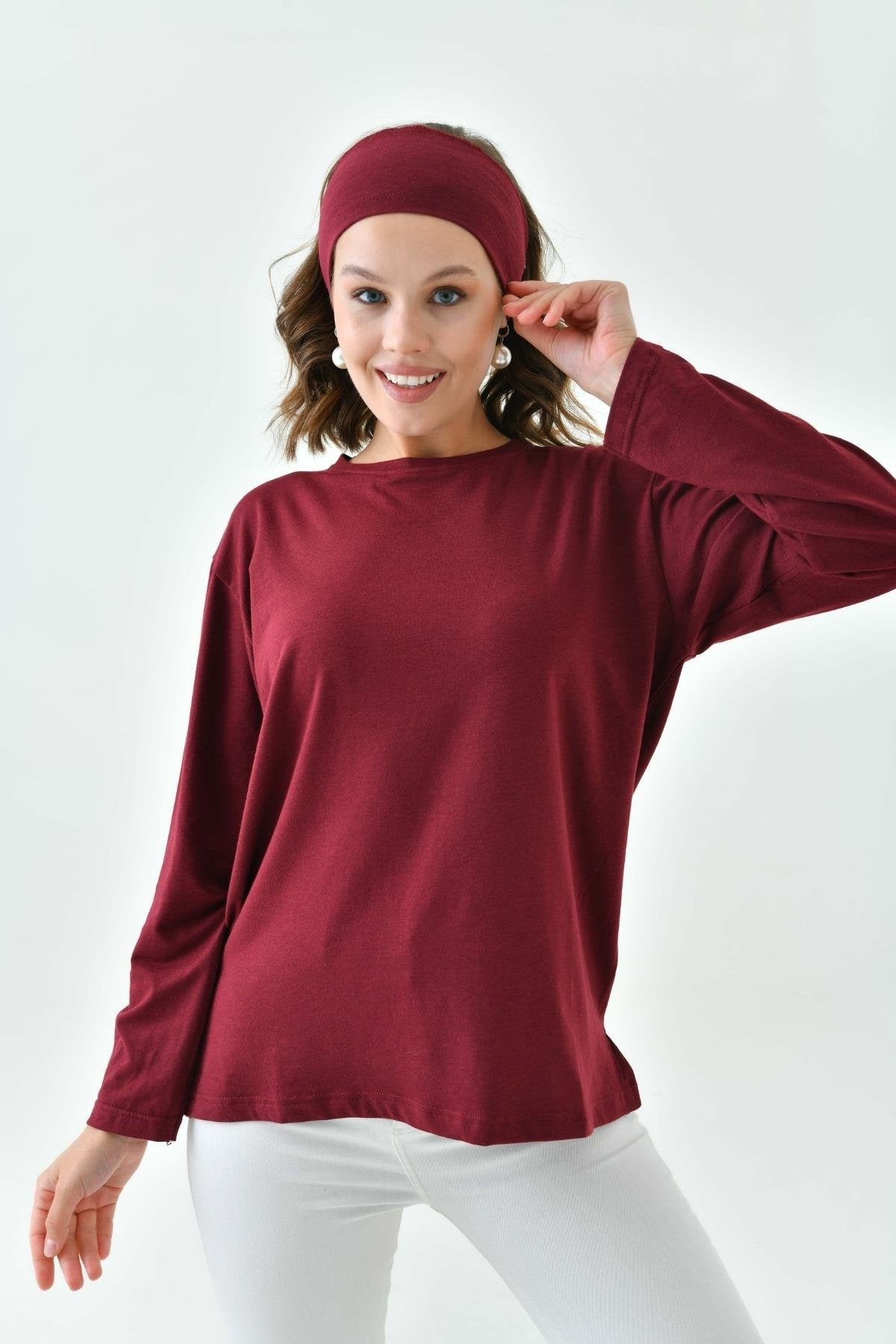 Uzun Kollu Tunik (Bandana Hediyeli) - Bordo
